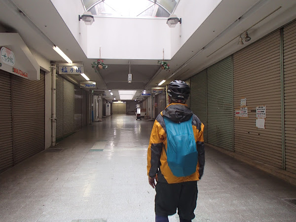 シャッターがしまったお店が続く 昭和のショッピングセンター |